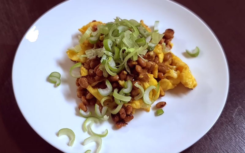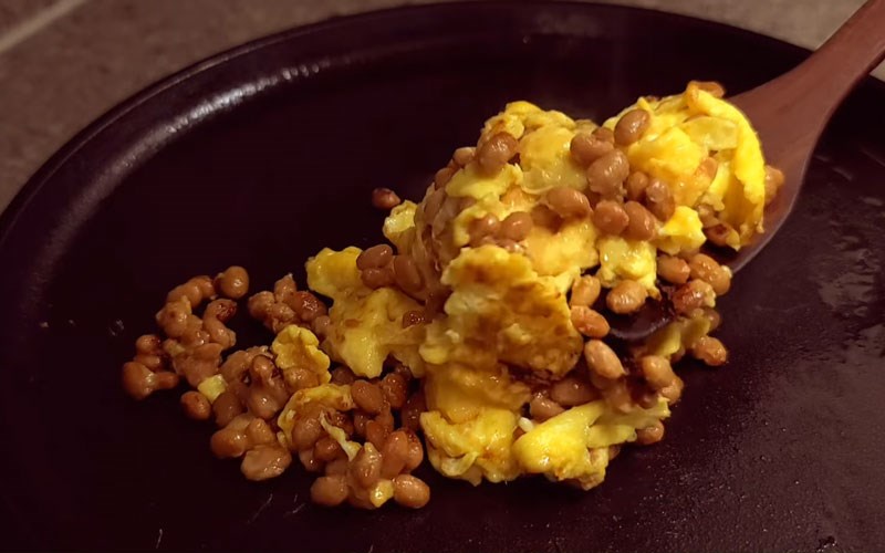 Trộn natto với trứng khuấy