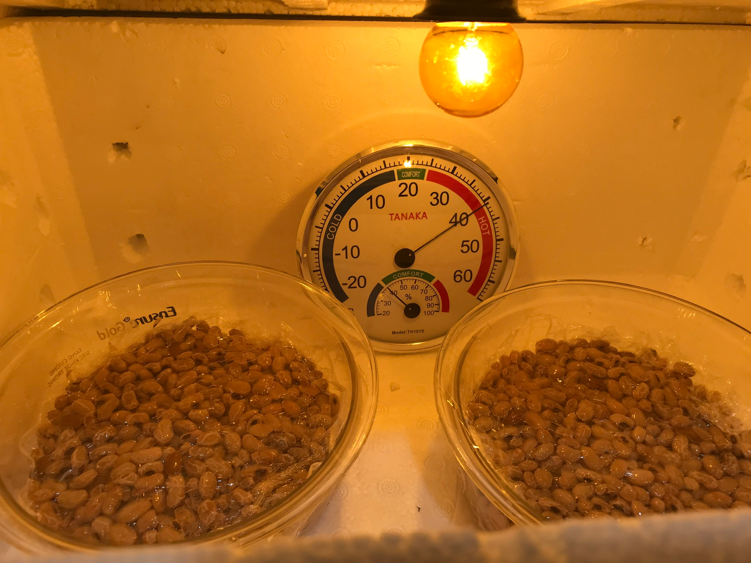 Chuyển đậu đã cấy bacillus sang các bát ủ. Nhiệt độ để lên men thường khoảng 38-42 độ C. Nhưng tốt nhất là khoảng 40 độ. Thời gian lên men trong khoảng 16-24h.