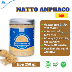 - Natto có mùi khá nồng, hơi khó ăn, việc bảo quản và vận chuyển cũng gặp khó khăn. Vì vậy, Viện vi sinh vật Đại học quốc gia Hà Nội đã tiến hành sấy khô và nghiền mịn, đóng túi 100g nhé cả nhà